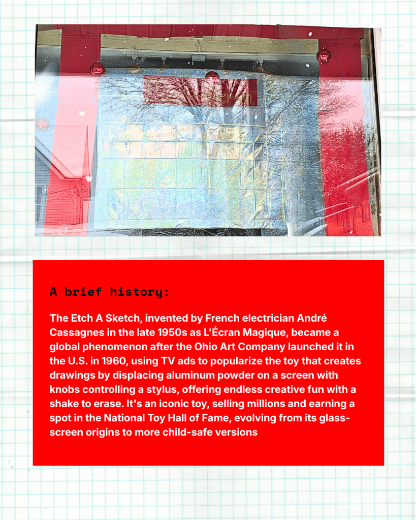 The Etch A Sketch, invented by French electrician André Cassagnes in the late 1950s as L’Écran Magique, became a global phenomenon after the Ohio Art Company launched it in the U.S. in 1960, using TV ads to popularize the toy that creates drawings by displacing aluminum powder on a screen with knobs controlling a stylus, offering endless creative fun with a shake to erase. It’s an iconic toy, selling millions and earning a spot in the National Toy Hall of Fame, evolving from its glass-screen origins to more child-safe versions.